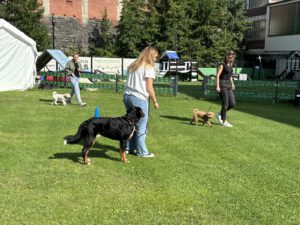 Ihr lauft gemeinsam einen Parcours mit Schildern, auf denen kleine Aufgaben stehen – Sitz, Platz, Wendungen, Kombinationen. Alles in Bewegung, alles im Team. Hier zählen Freude, Kommunikation und Zusammenarbeit – Perfektion kommt später.